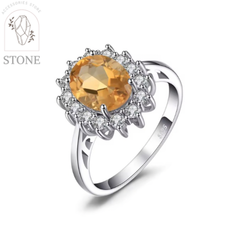 خاتم من الفضة مطعم بحجر السترين الطبيعي مع احجار الزركون