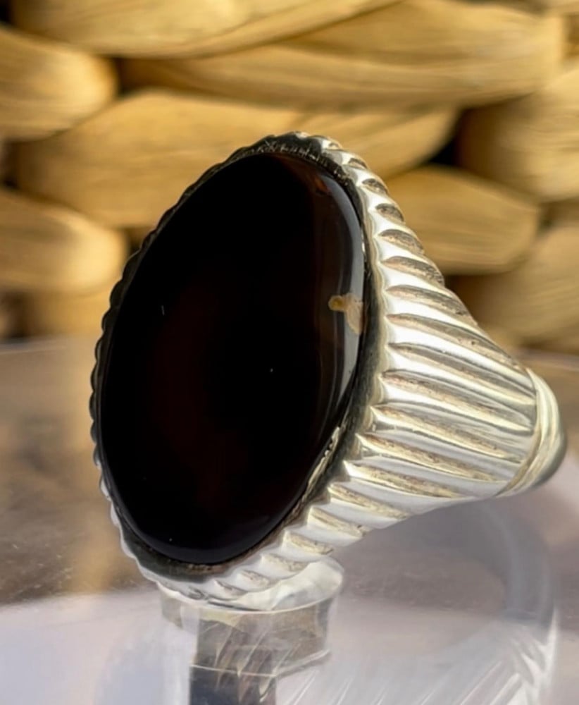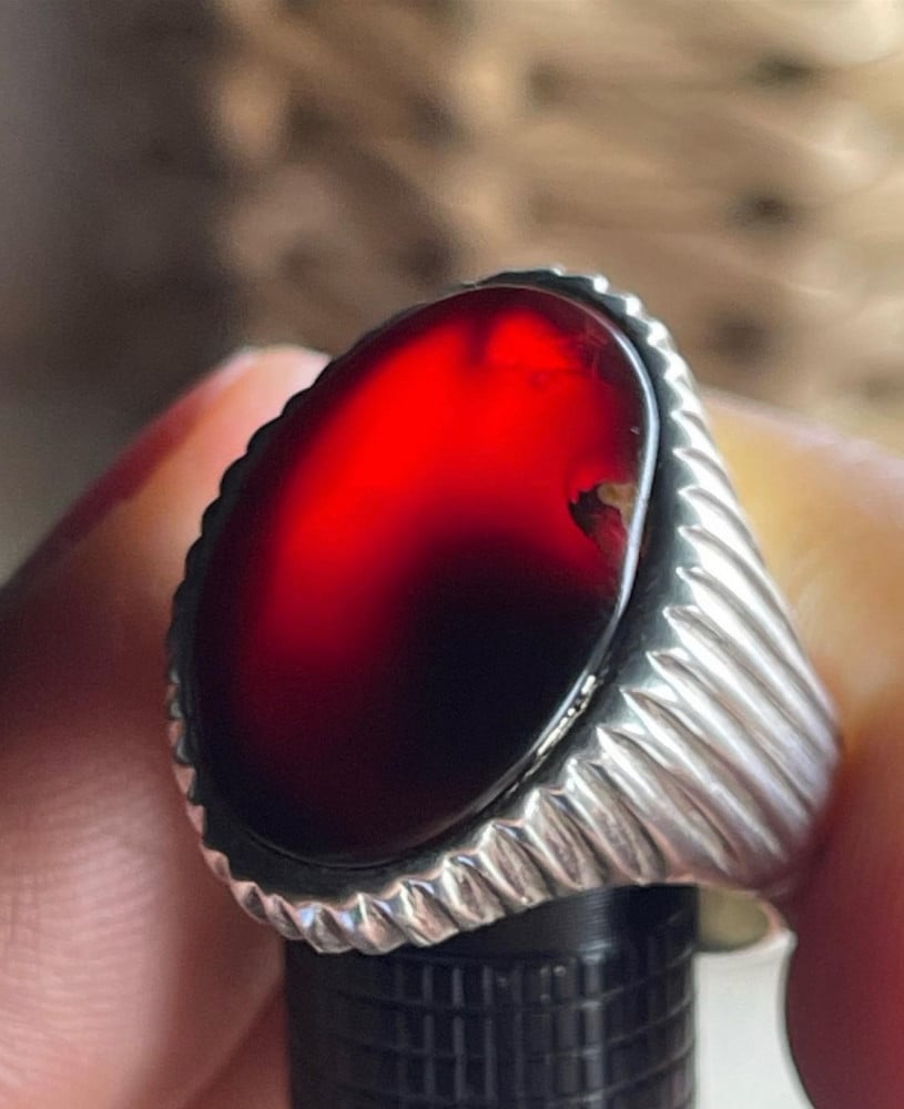 عقيق يماني كرزي غامق اقرب إلى ( شفة العبد ) بضربة زعفران