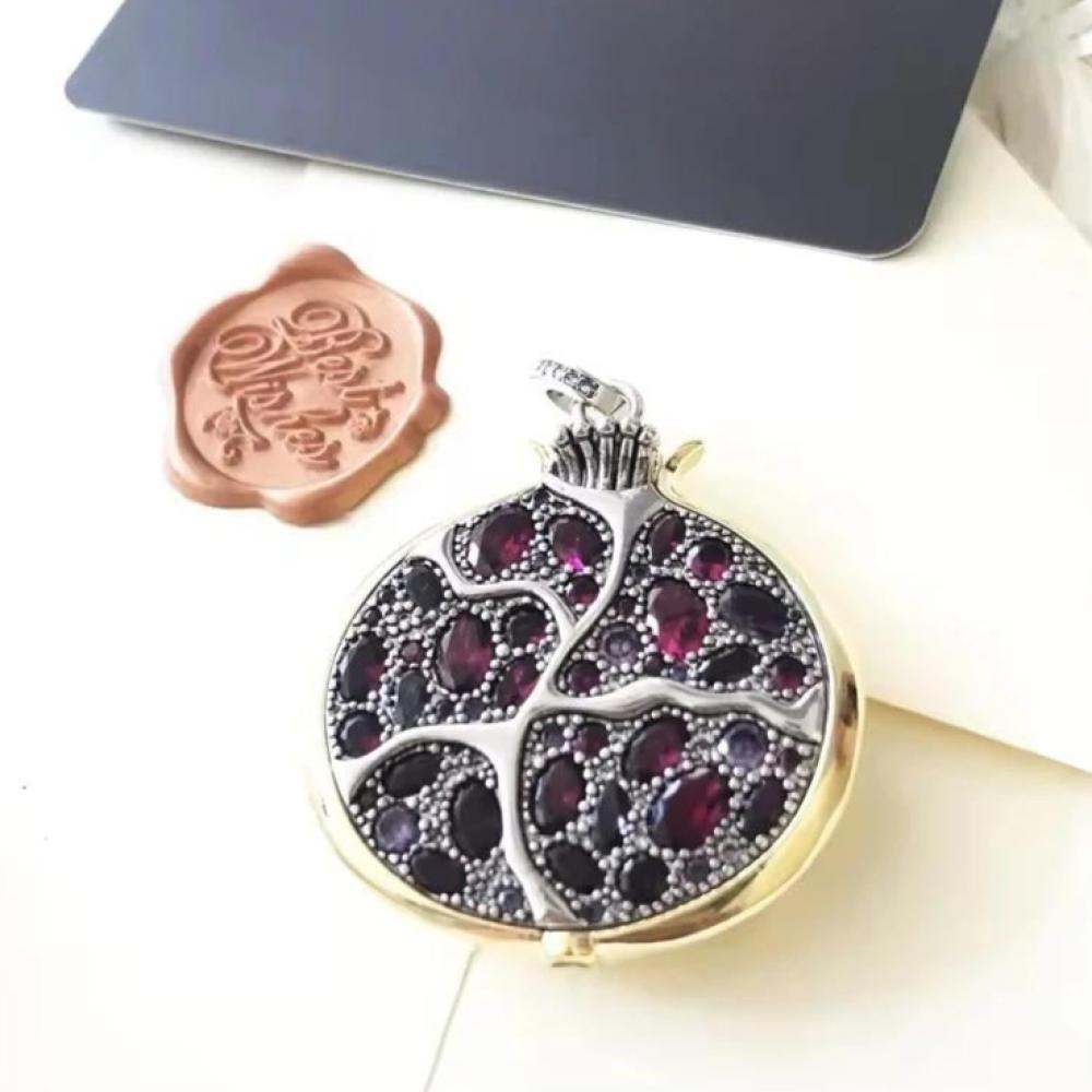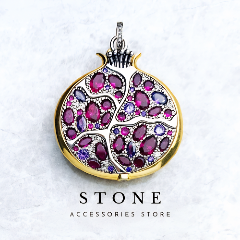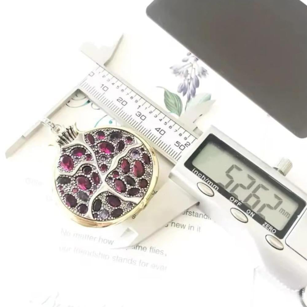نقدم لك قلادة الرمان الرائعة المصنوعة من الفضة الإسترلينية عالية الجودة، والتي ترمز إلى الرخاء والحب والوفرة. صُنعت هذه القلادة بعناية فائقة، وتتميز بتصميم نصف رمانة مذهل مزين بأحجار زركون حمراء وأرجوانية نابضة بالحياة، ومرصعة بأناقة بالفضة الإسترلينية ومزينة بلمسة من الطلاء الذهبي لإضفاء لمسة نهائية فاخرة.
