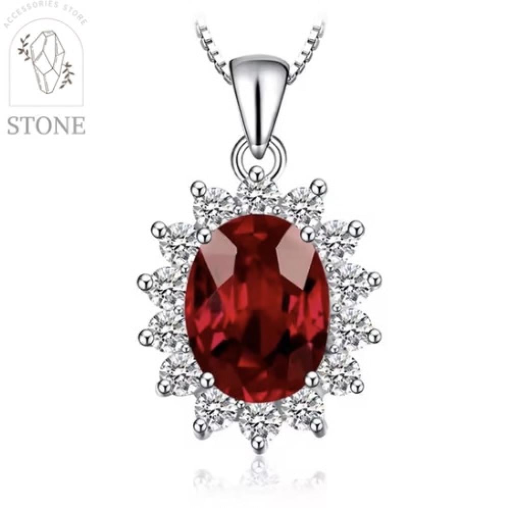 قلادة من الفضة مطعمه بحجر القارنيت الطبيعي مطعمه بالزركون