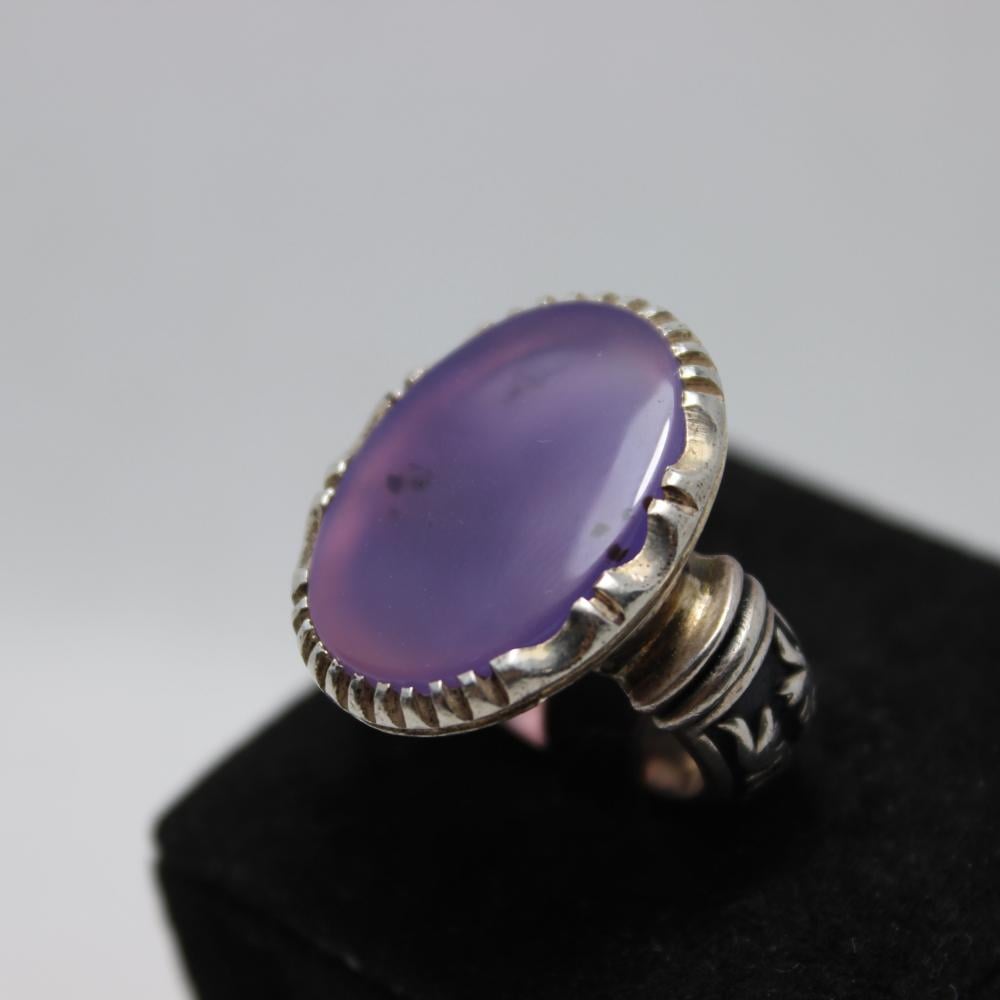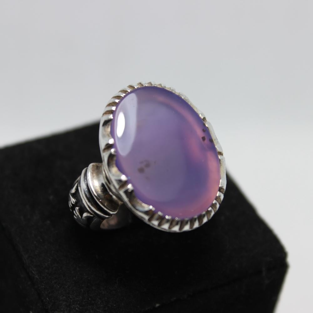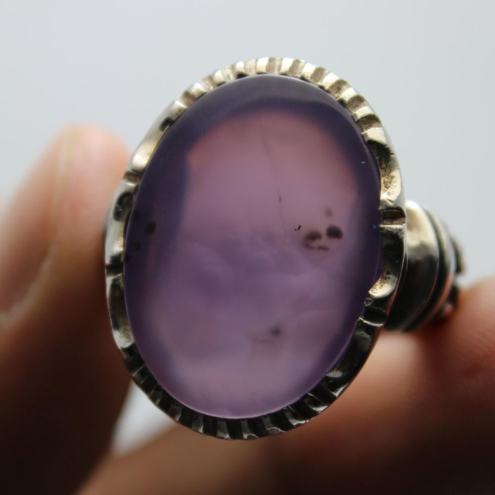 عقيق بنفسجي يماني مجلجل بالغيوم طبيعي خامة مميزة، صياغة برتاش فضة ثقيلة عيار 925 .