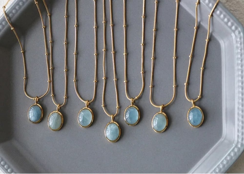 قلادة الاكومارين لا تسبب الحساسية جميلة ولن تتشوه بسهولة، وآمنة للبشرة الحساسة، ولا تضر بالصحة فهي مناسبة للارتداء اليومي للنساء أو الفتيات.