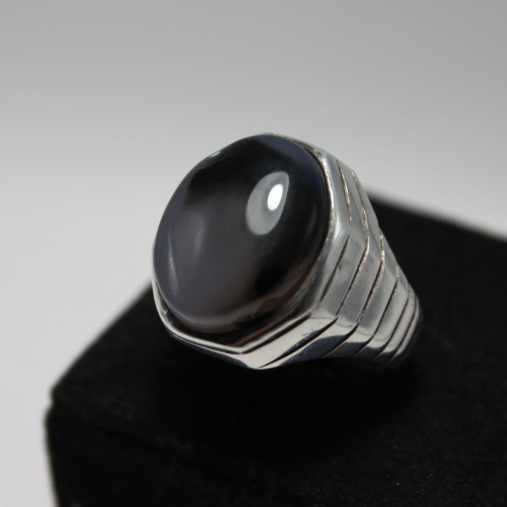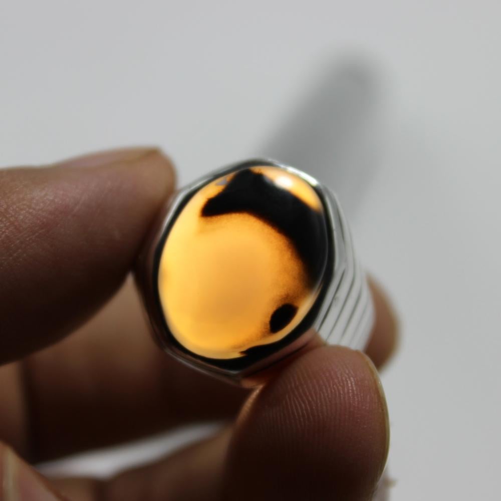 عقيق يماني مصور طبيعي، صياغة فضة عيار 925.