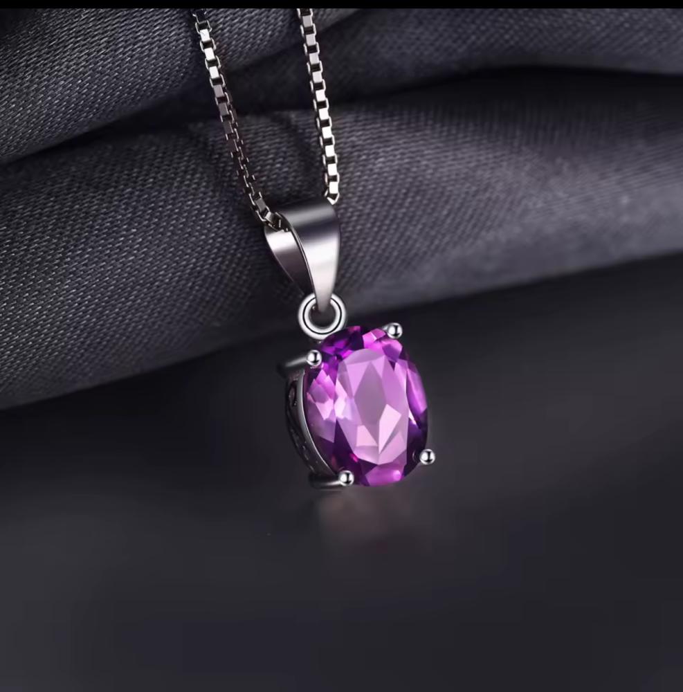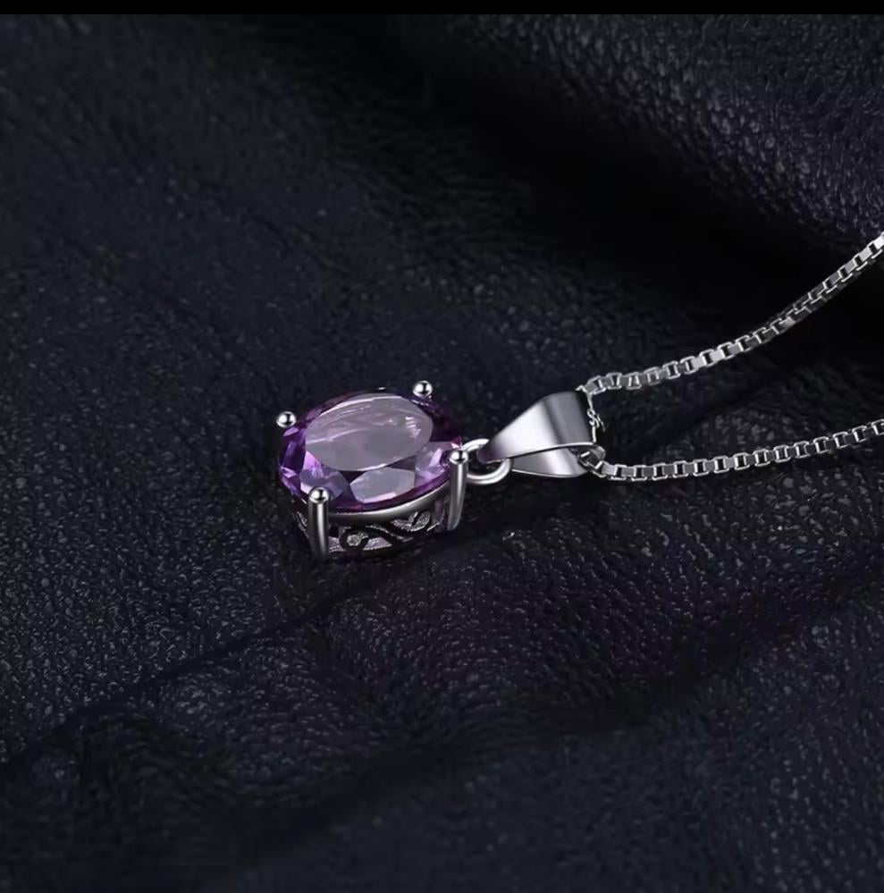 قلادة من الفضة مطعمه بحجر امثيست (جمشت) الطبيعي