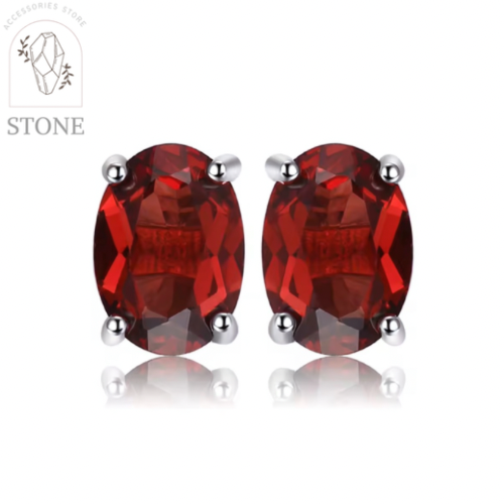 أقراط من الفضة مطعمه بحجر القارنيت الطبيعي
