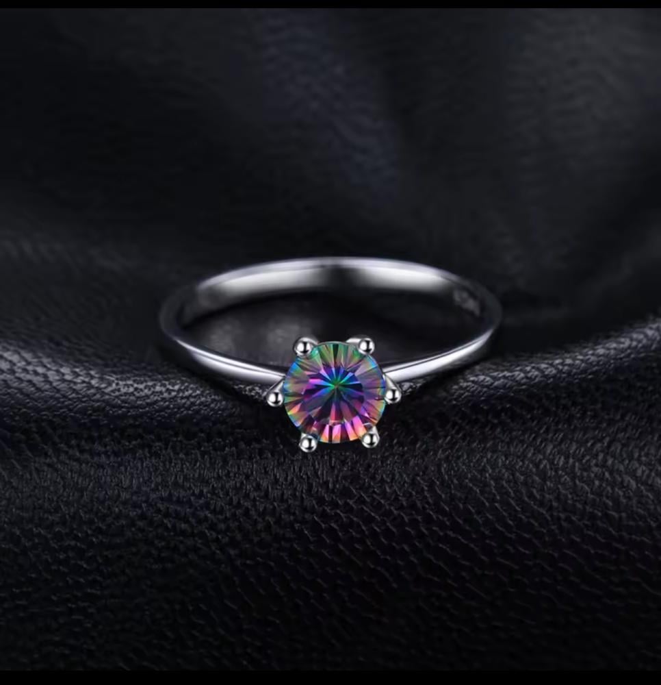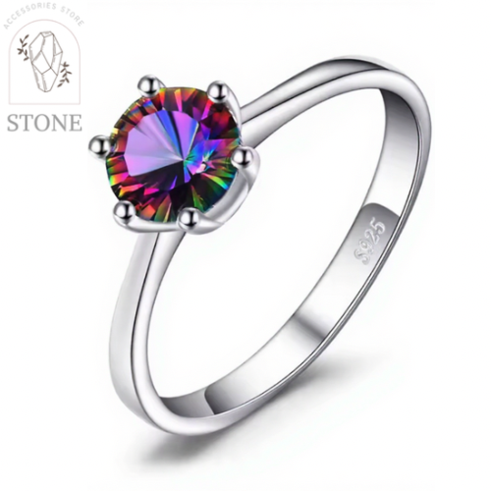 خاتم من الفضة مطعم بحجر ميستك كوارتز الطبيعي