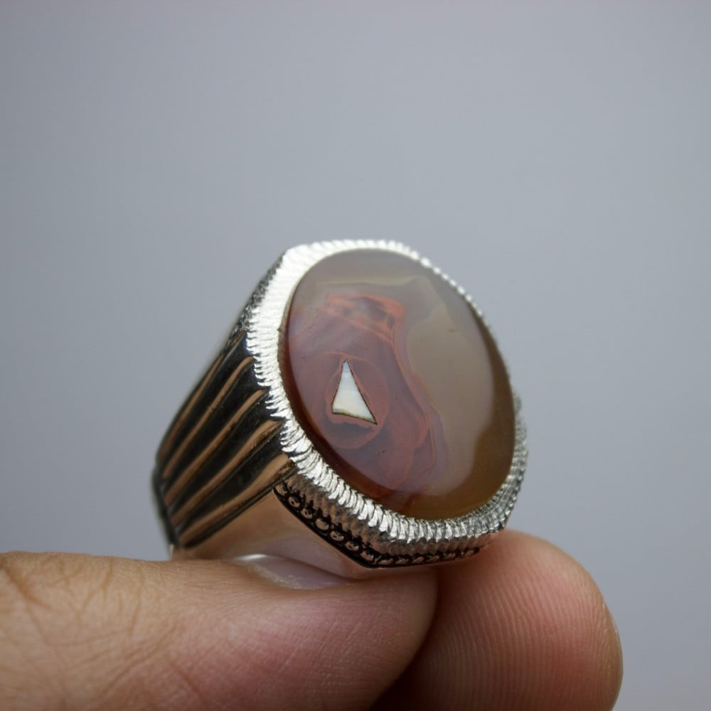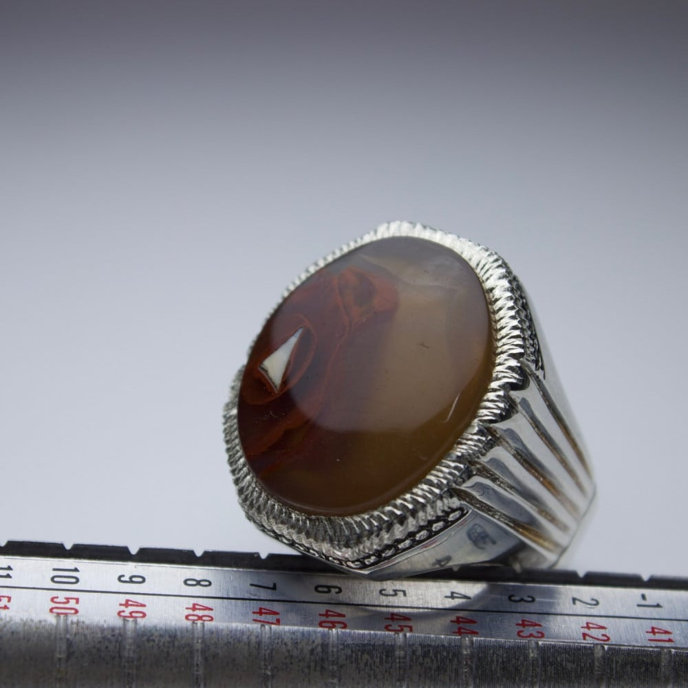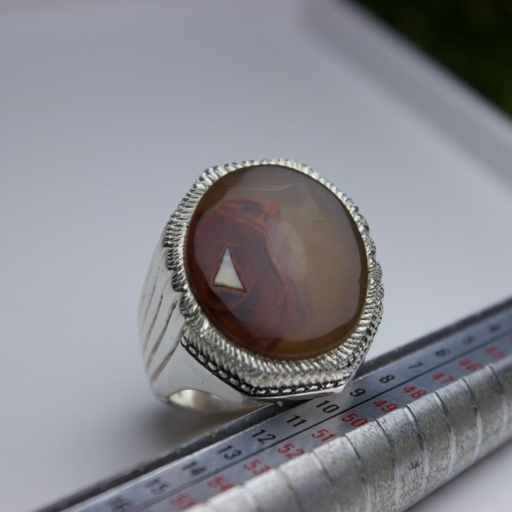عقيق يماني زيتي زجاجي فل زعفران مصور تبارك الرحمن لعشاق التميز