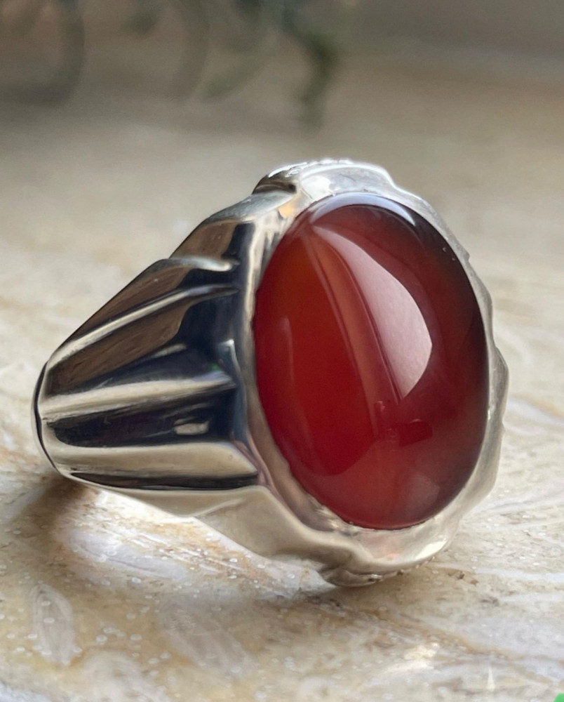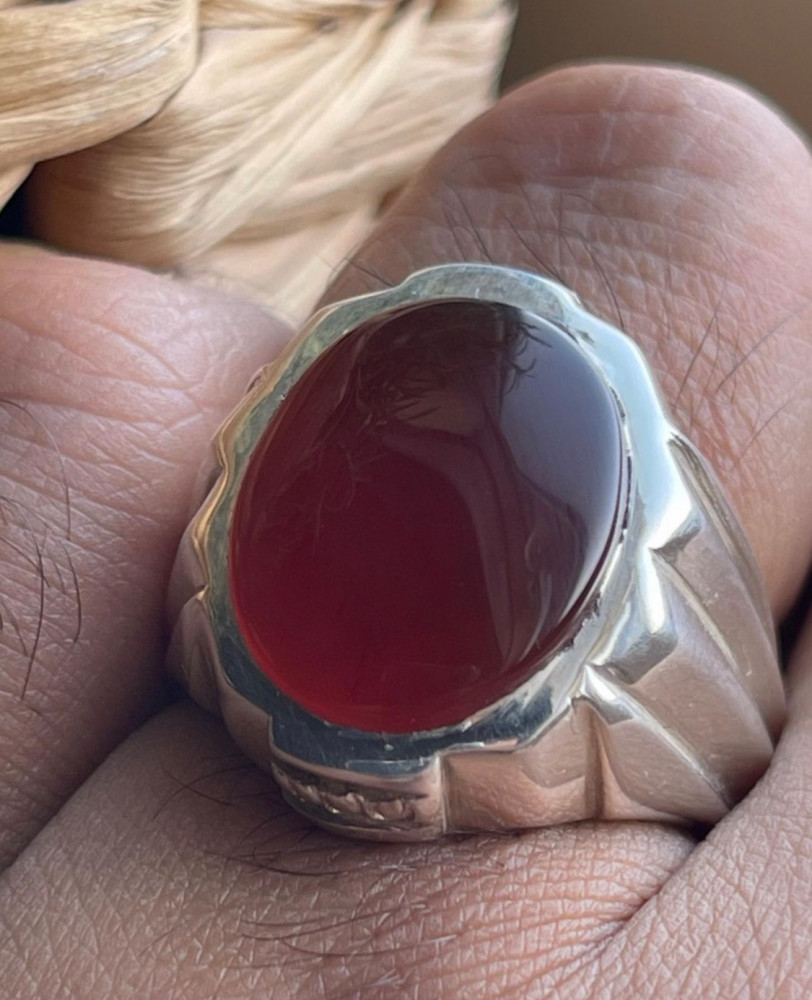 عقيق يماني احمر ياقوتي زجاحي صياغة بحرينيه
