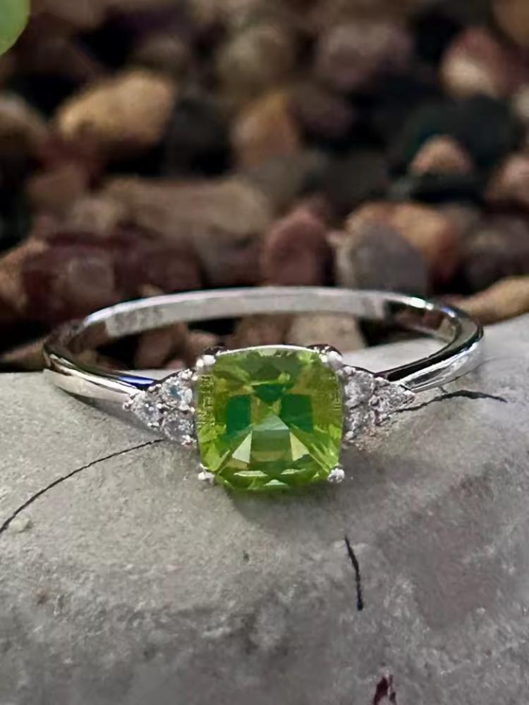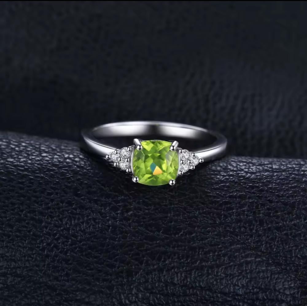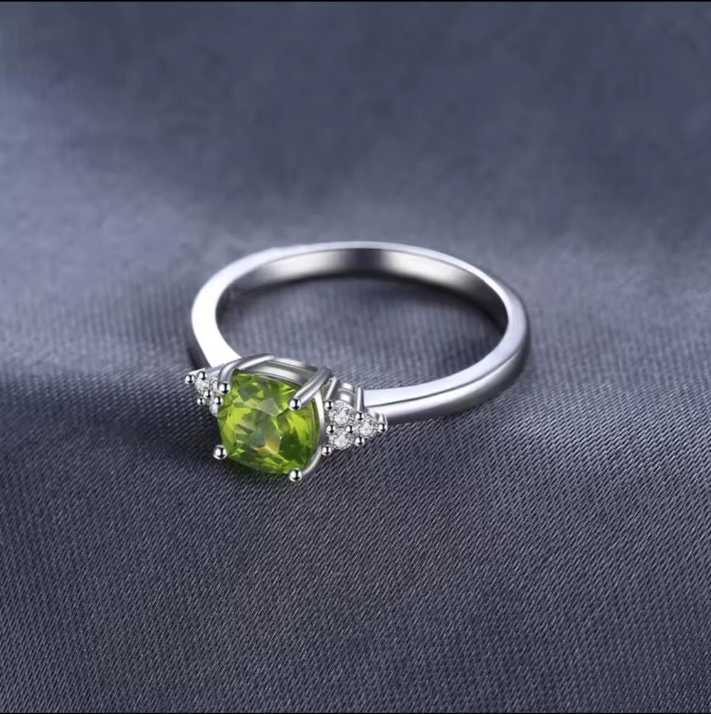 خاتم من الفضة مطعم بحجر الزبرجد الطبيعي مع احجار الزركون