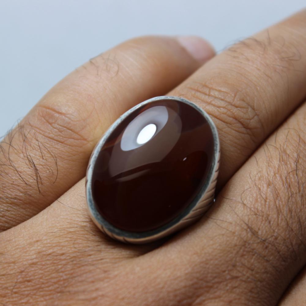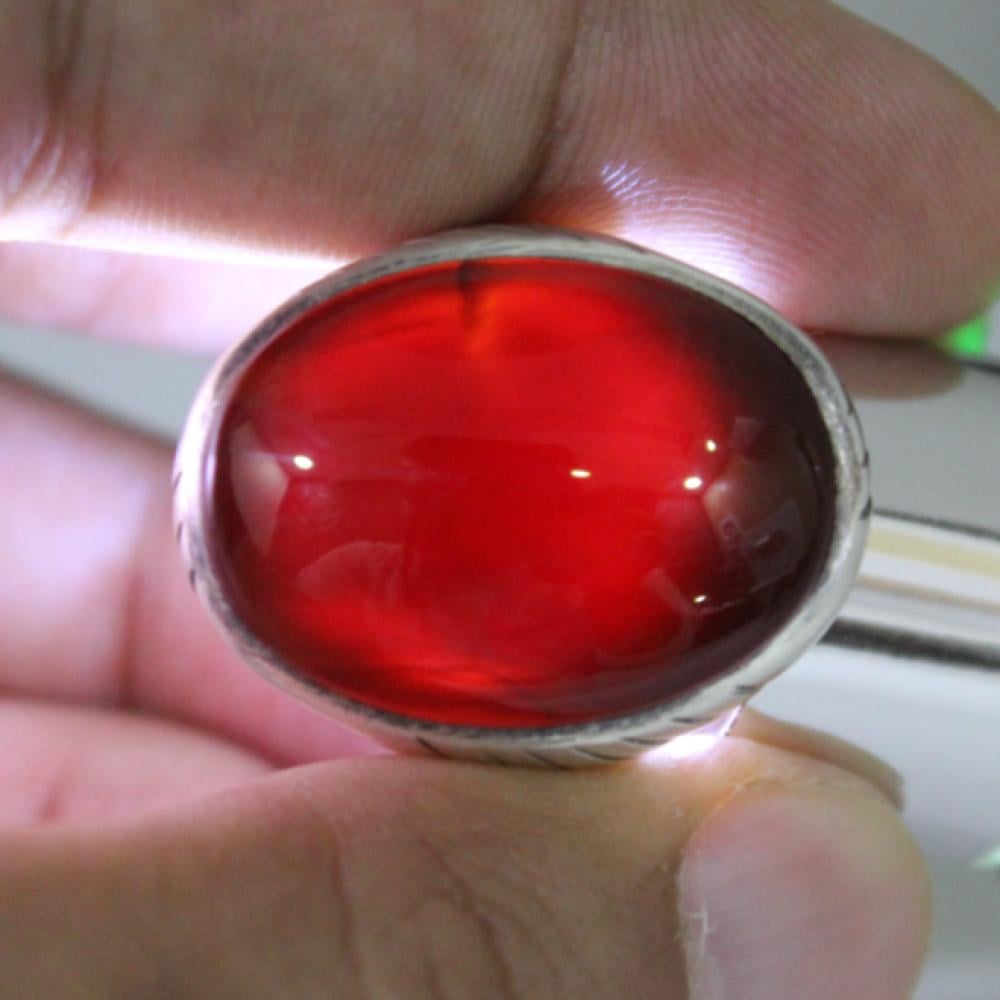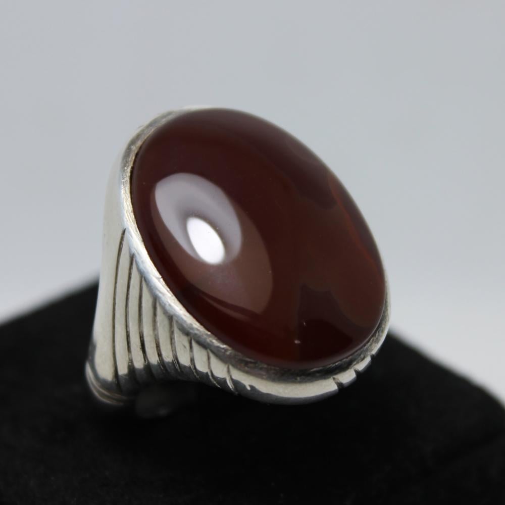 عقيق كرزي يماني مزعفر طبيعي خامة مميزة، صياغة فضة ثقيلة عيار 925 .