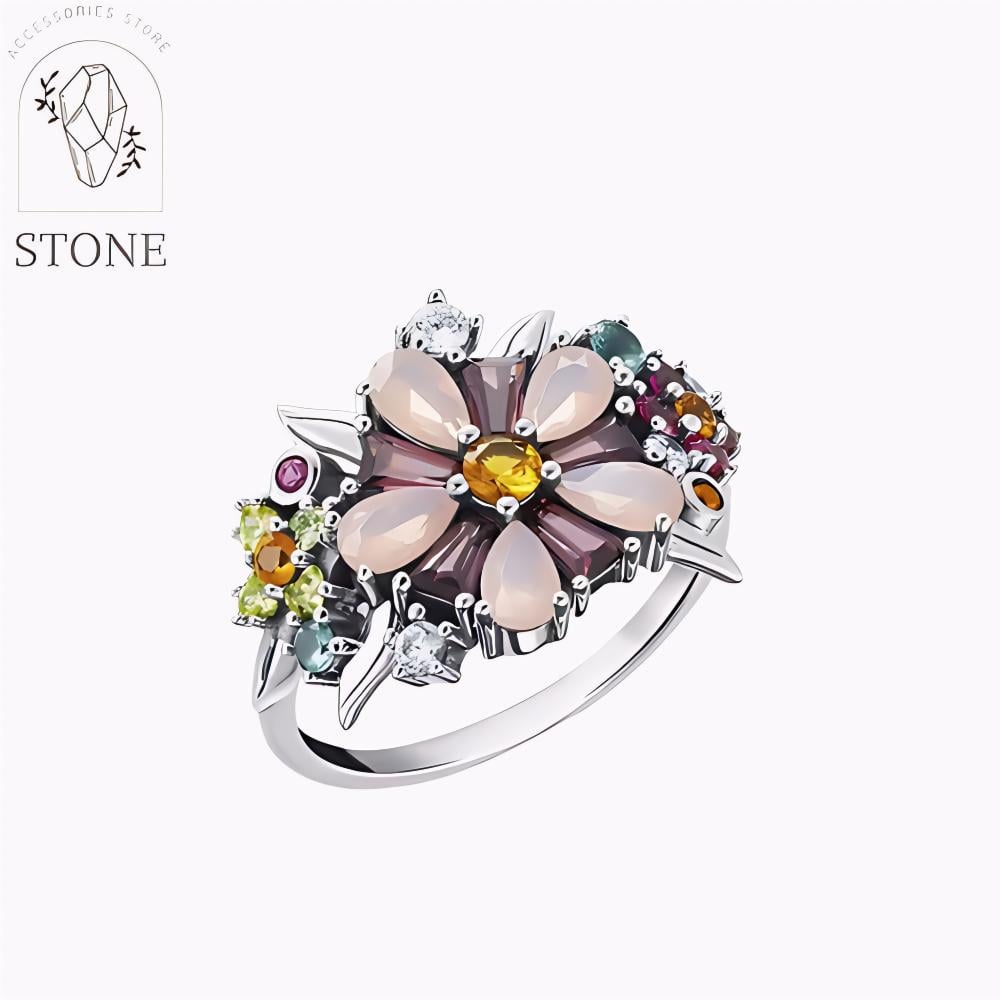 خاتم أنيق من الفضة الاسترلينية بتصميم زهرة متألقة مرصعة بأحجار زركون ملونة تمنحك إشراقة مميزة ولمسة عصرية فاخرة. قطعة مثالية لتكملي بها أناقتك اليومية أو لمناسباتك الخاصة بإطلالة تنبض بالجمال.