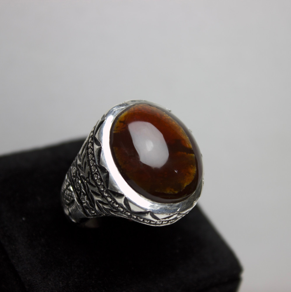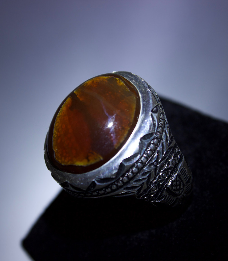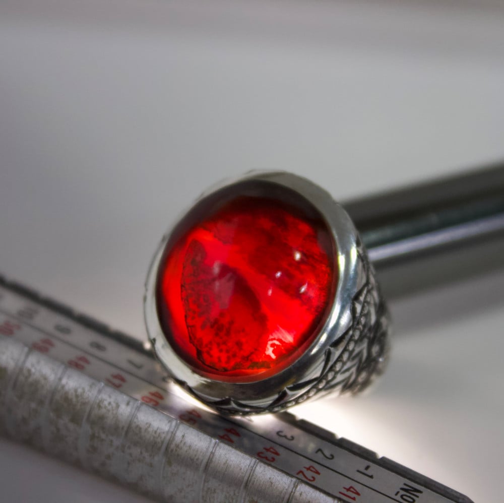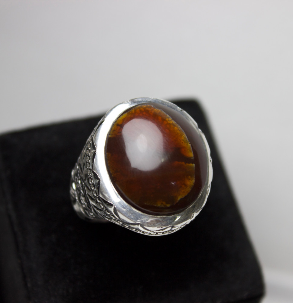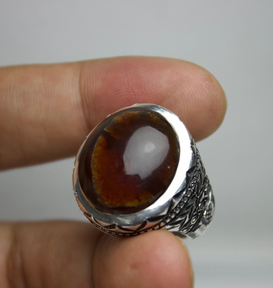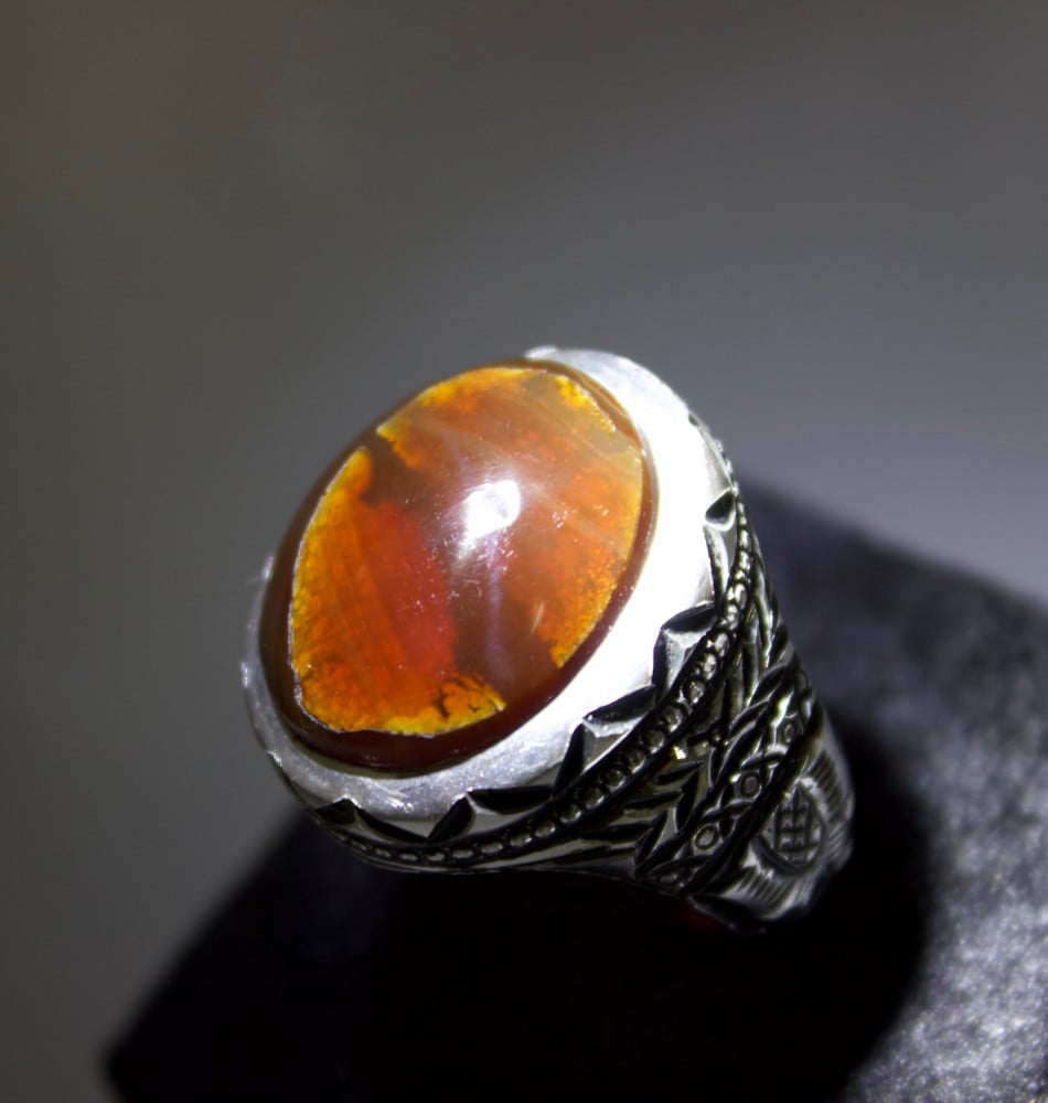 عقيق يماني كرز الكرز مصور بالزعفران تبارك الرحمن ثلاثي الأبعاد قطع بيضاوي صياغة (محمدعارف) برتاش يدوي فضة ثقيلة